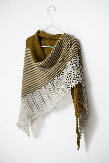Starting with just two stitches, you knit Spotlight diagonally for a slightly asymmetric triangle. A perfect combination of garter stitch, eyelets, stripes and lace.