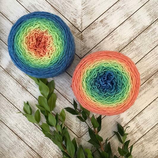 These center-pull, cakes of joy are hand-dyed in floral-inspired gradients for one continuous color-changing knit! Blossoms are 80% superwash merino/20% nylon; great for socks, shawls, accessories, and lightweight garments.