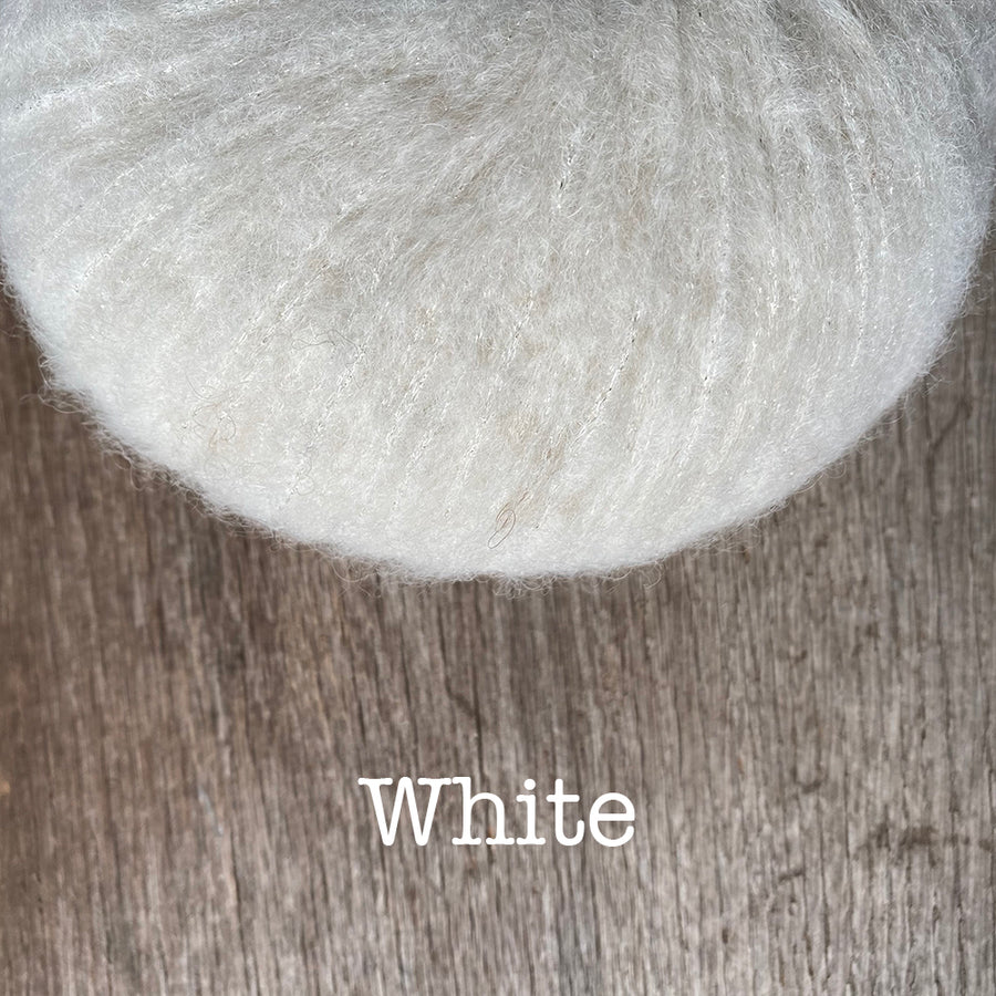 If you’ve ever wondered what the silver lining of a cloud might look like, then Avita is an excellent example! This lighter than air yarn has a core of shiny sparkling Lurex which is braided with nylon for strength. The flickering core floats inside a fluffy halo of Baby Alpaca that is as soft as a tiny cloud come to earth. The lighter shades host a more subtle sparkle experience while the darker shades have deep contrast for a glimmering core. You can count on Avita being great for next to the skin and adding some glamour to any project you desire! Made in Peru.