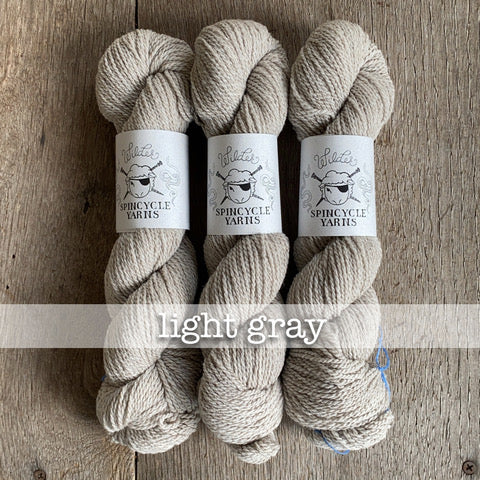 Spincycle Wilder is a go-to companion yarn for all your Dyed in the Wool colorwork needs. Made from 100% American Merino wool, Wilder is a squishy 2-ply sport weight yarn available in two classic shades of natural greys. In addition to colorwork, Wilder would also make a great yarn for wardrobe staple pullovers and cold-weather accessories. Produced at Mountain Meadows in Wyoming.